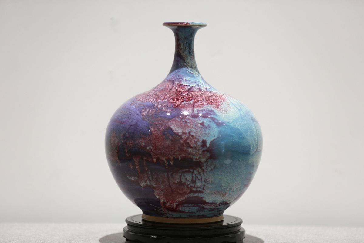 钧瓷“入窑一色,出窑万彩”,铜系金红釉的研发成功,在更广阔的色彩体系上彰显了钧瓷万彩的美学风格。