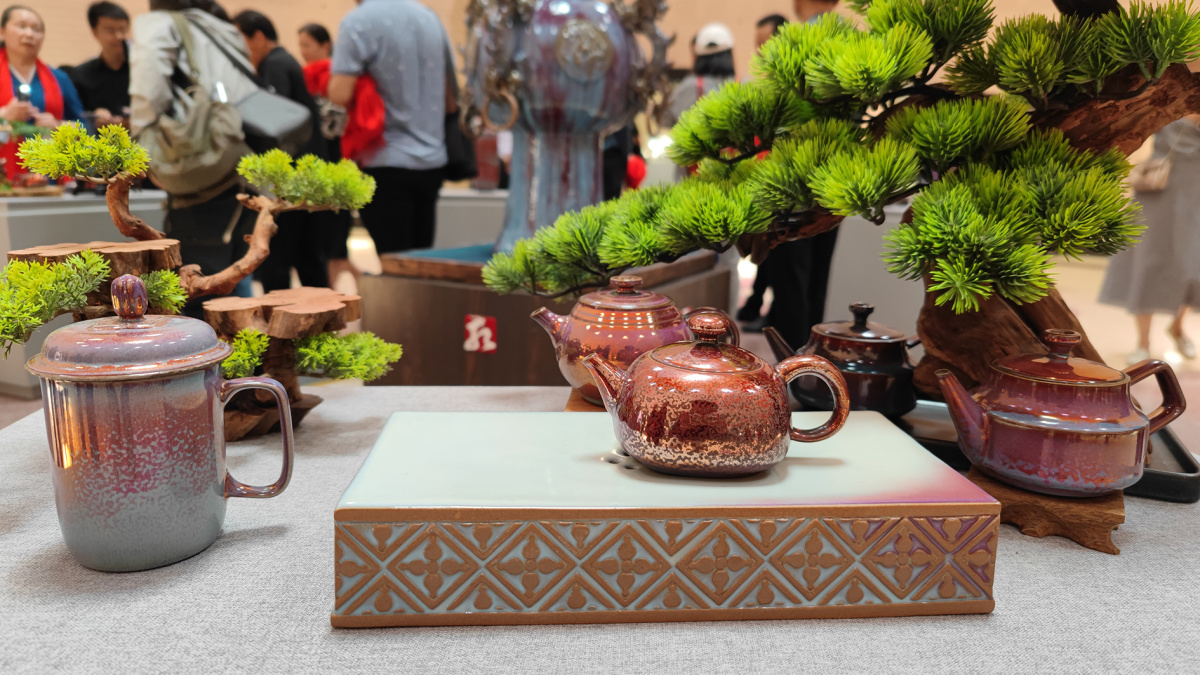 当天,“大道天成——孔相卿大师从艺45年成就展”在这里举行,展出了孔相卿大师的100多件代表性作品。其中,位于展区C位、引发热烈讨论的这几件钧瓷作品,是“钧窑铜系金红釉”首次面世之作,代表了孔相卿大师最新的研发成果。